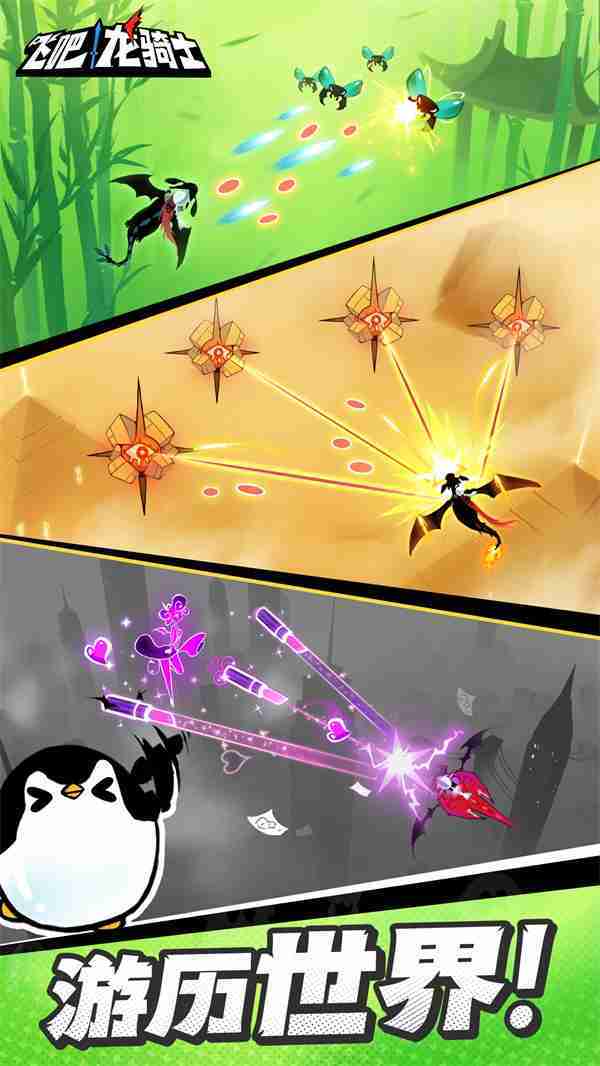 《飞吧龙骑士》是一款集合了飞行弹幕射击、、Roguelike要素和挂机养成的休闲手游,,,,极具创意的吞食子弹反击玩法,,突破传统飞行射击的刻板限制,,带来了独特的爽快清屏体验。。。