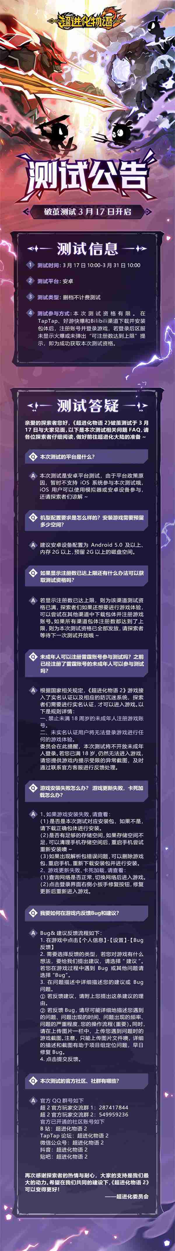 《超进化物语2》首次限号不计费删档测试——「破茧测试」将于3月17日开启,,,随我们确认测试细节,,,,明天迈出踏上超进化大陆的第一步吧!!