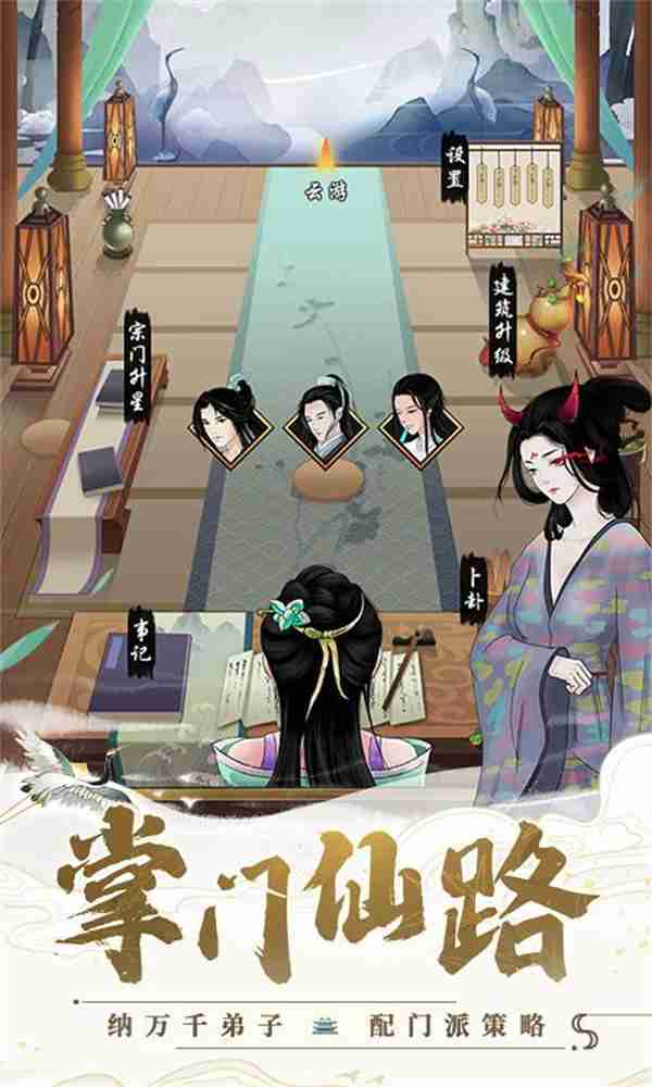 在游戏中,,,,玩家需要作为掌门去经营整个门派,,,可以兢兢业业,,也可以做个甩手掌门,,,或者不务正业,,,寄情山水……总之一句话,,,修仙不求人,,,花式做掌门!!!