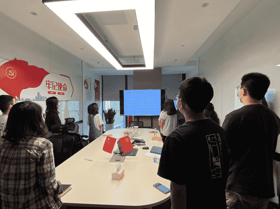 而后,,,全体党员一起重新学习了解了目前的入党流程要求,,各支部也将在后续工作中进一步发挥支部职能,,,,做好发展党员工作。。。。最后,,全体党员面向党旗,,重温入党誓词。。